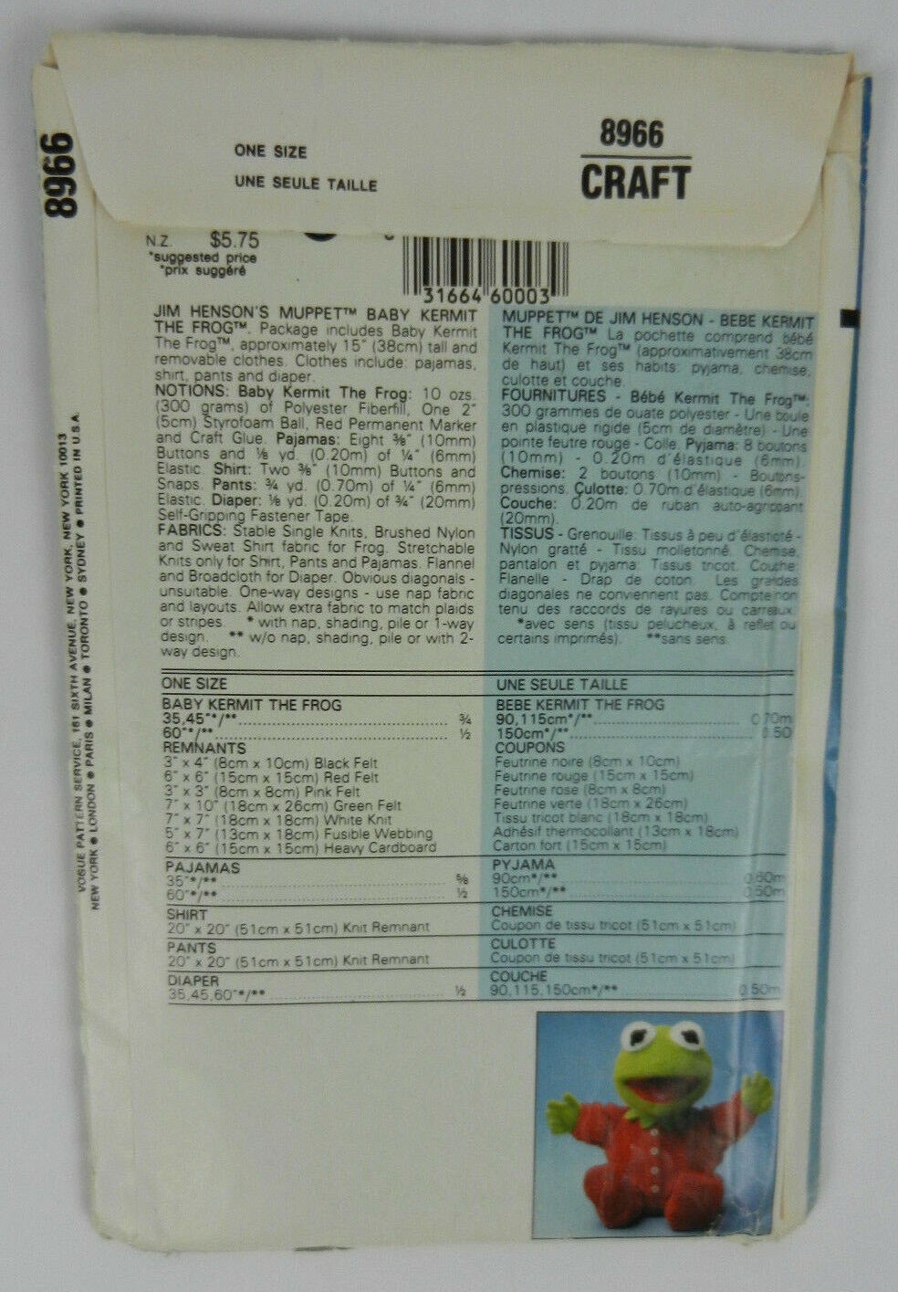Vogue Sewing Pattern 8966 Kermit Muppet Babies Soft Sculpture Clothes Vtg Uncut Ebay